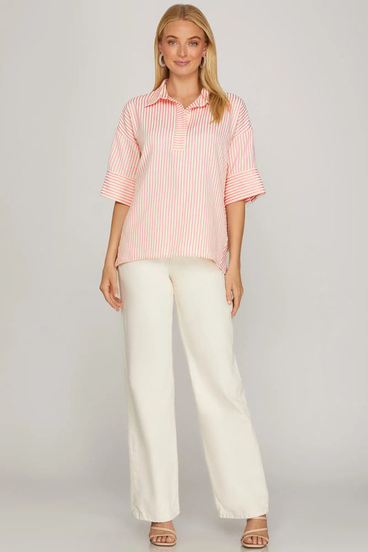 Tiered Ruffle Sleeve Solid Shirt Blouse: PINK