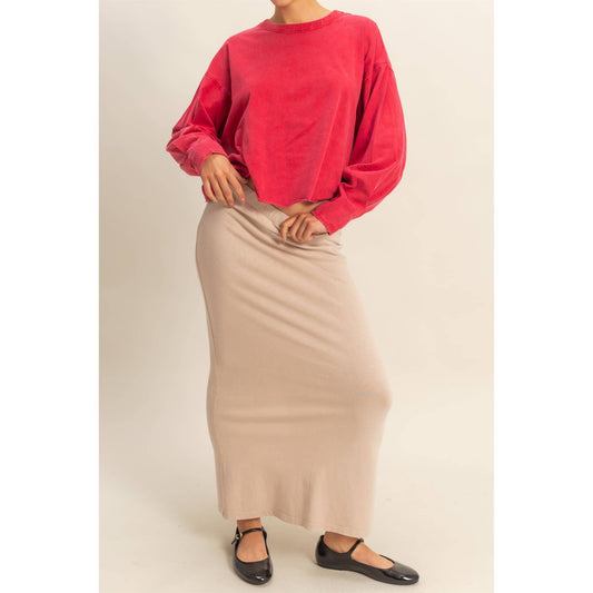 Rib Knit Bodycon Maxi Skirt With Back Slit: BABY PINK