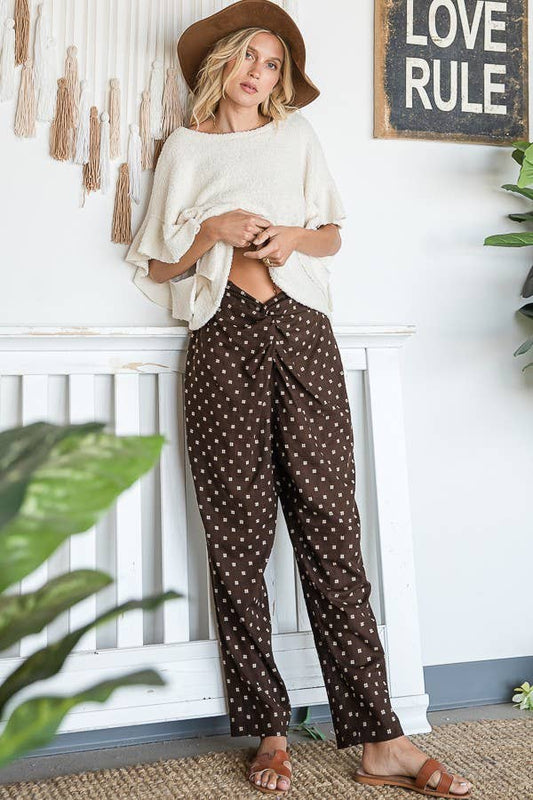 Twist Waist Pants With Pockets: Brown