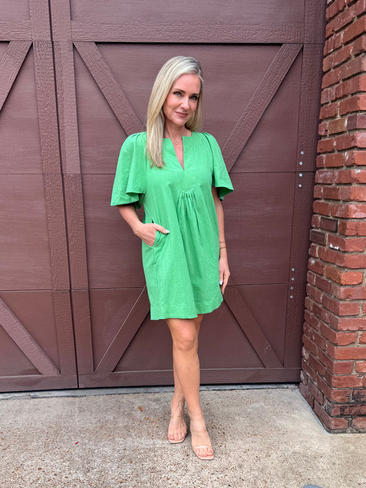 Green Flutter Sleeve Dress