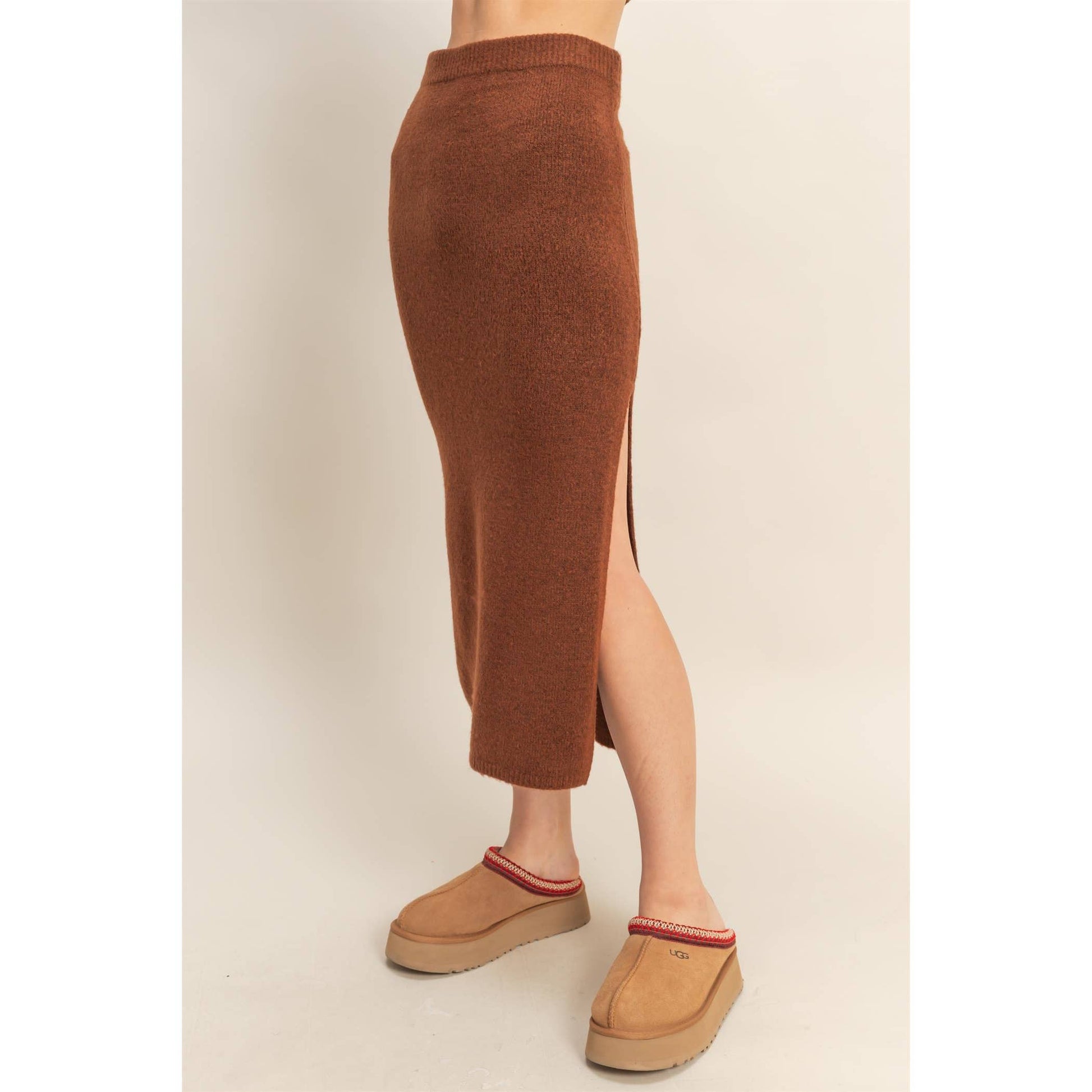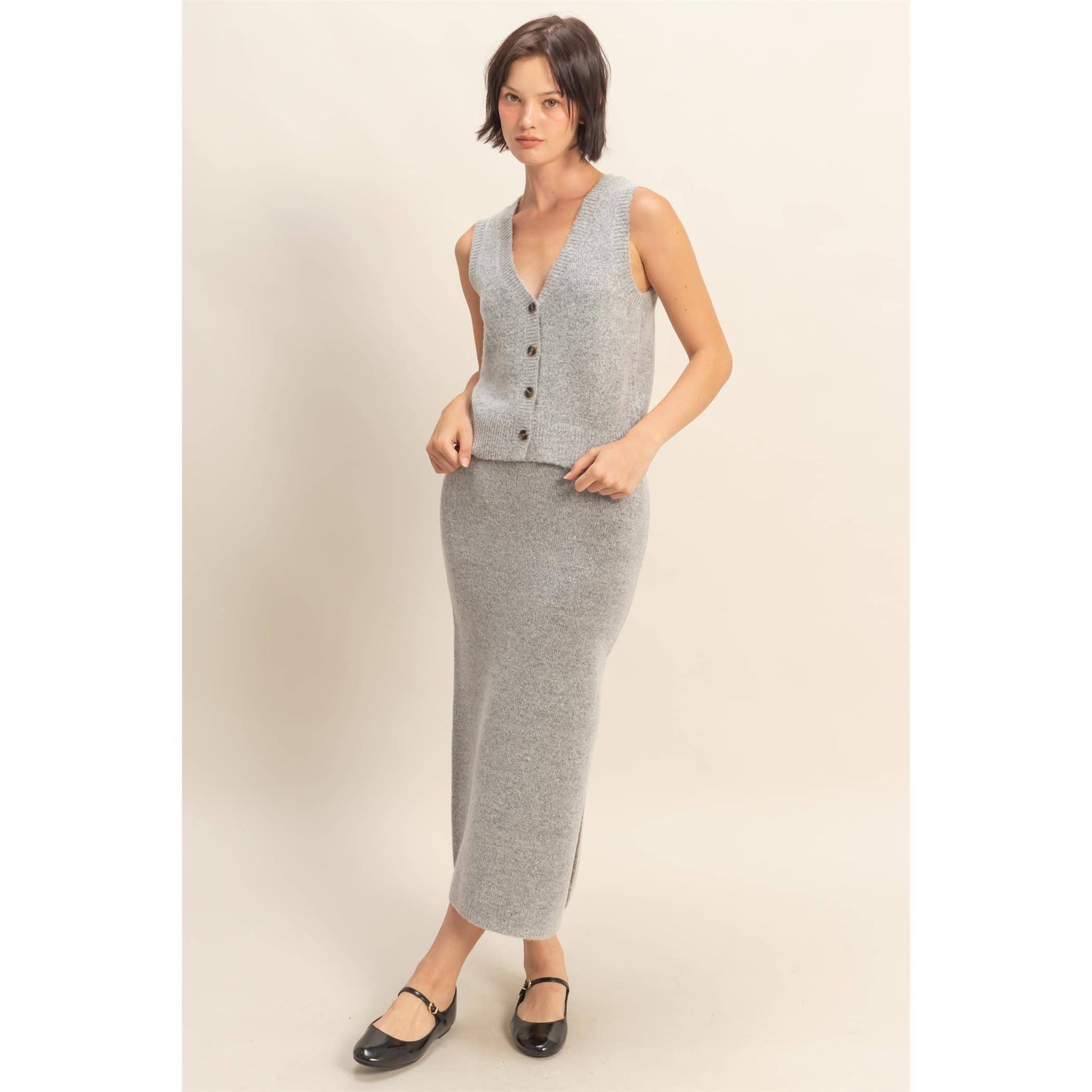 Button Front Vest & Midi Skirt Knit Set: SAGE GREEN