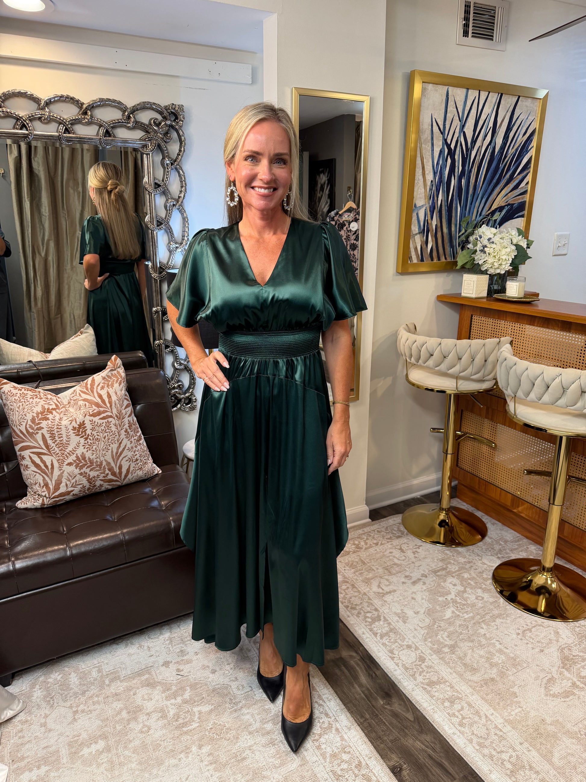 V-NECK CAP SLEEVE SLIT DETAIL ELASTIC AT WAIST