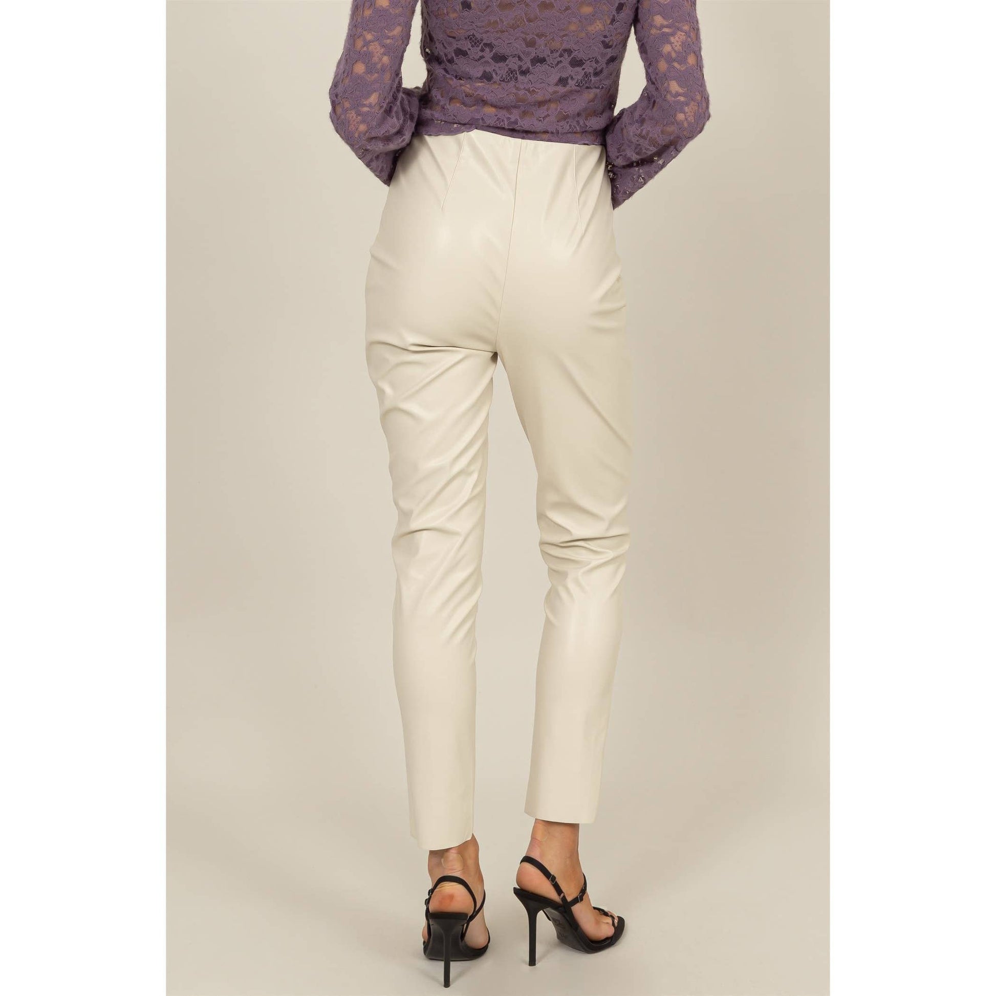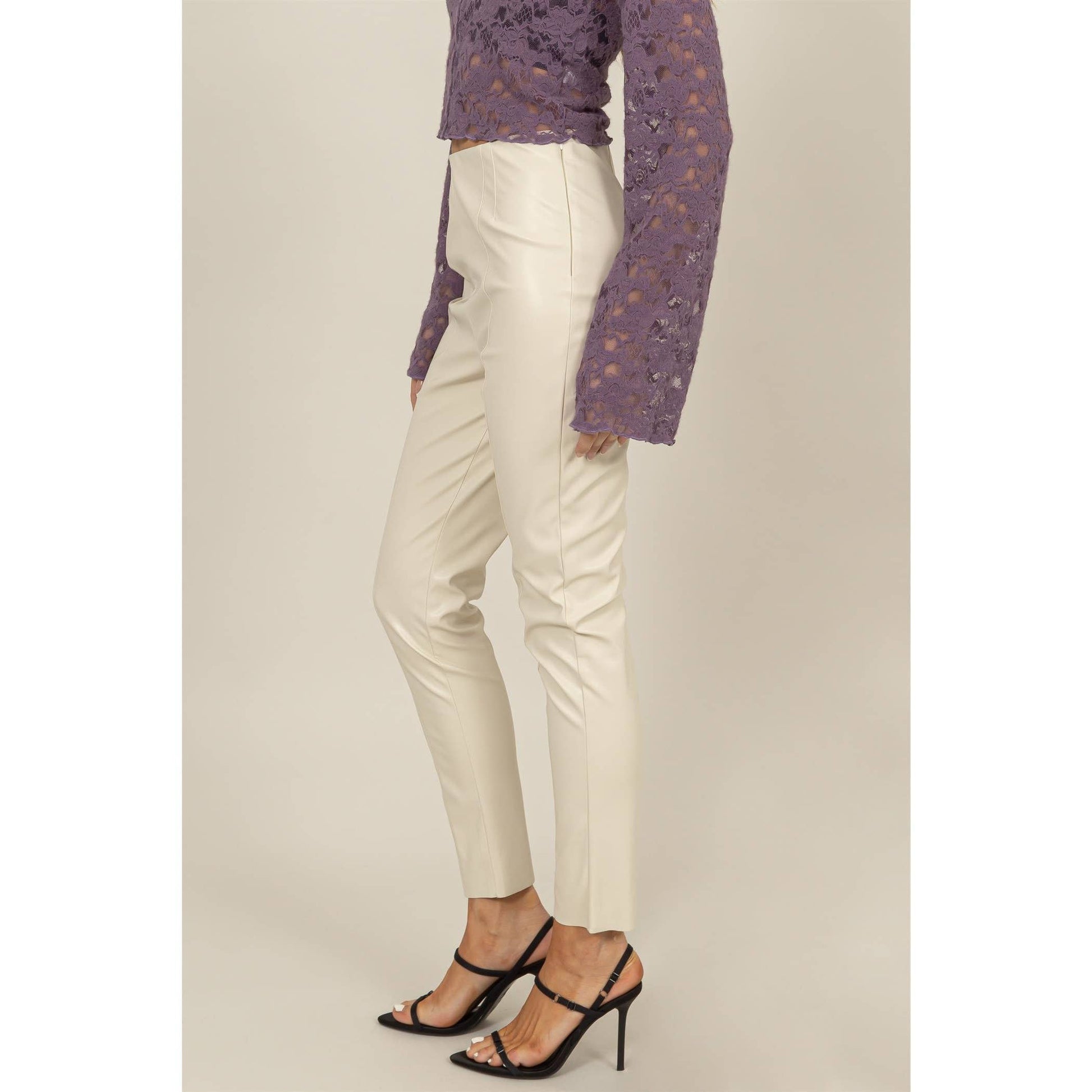 Faux Leather High-Waist Skinny Pants: CREAM / S-M-L