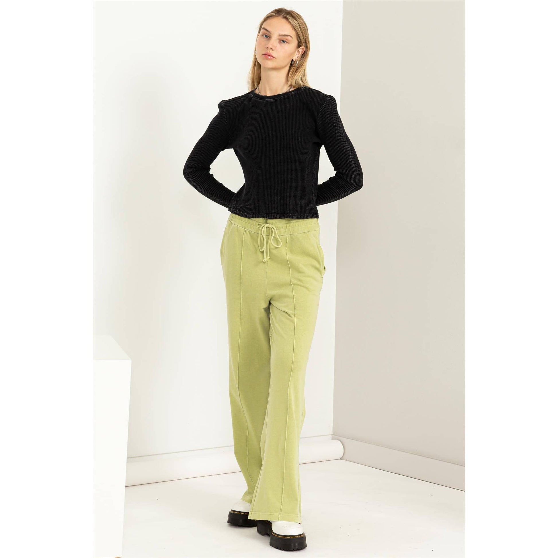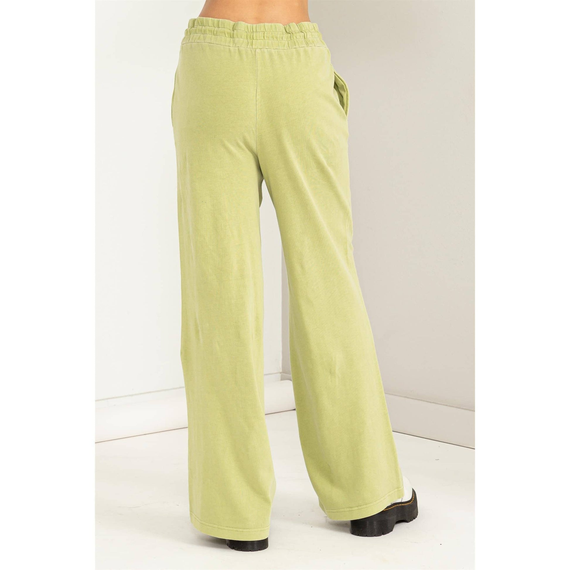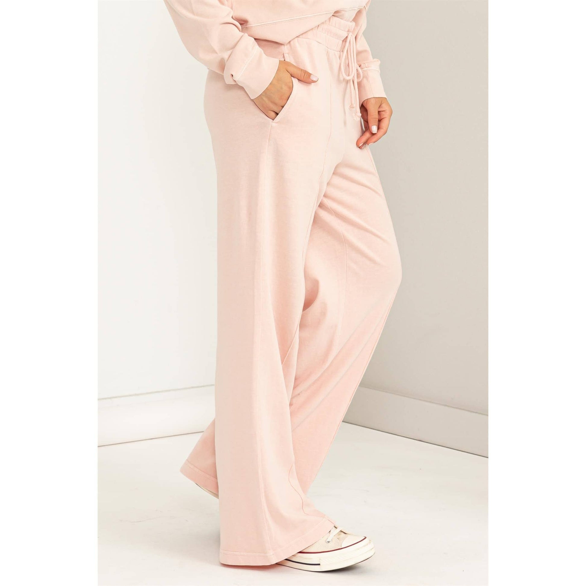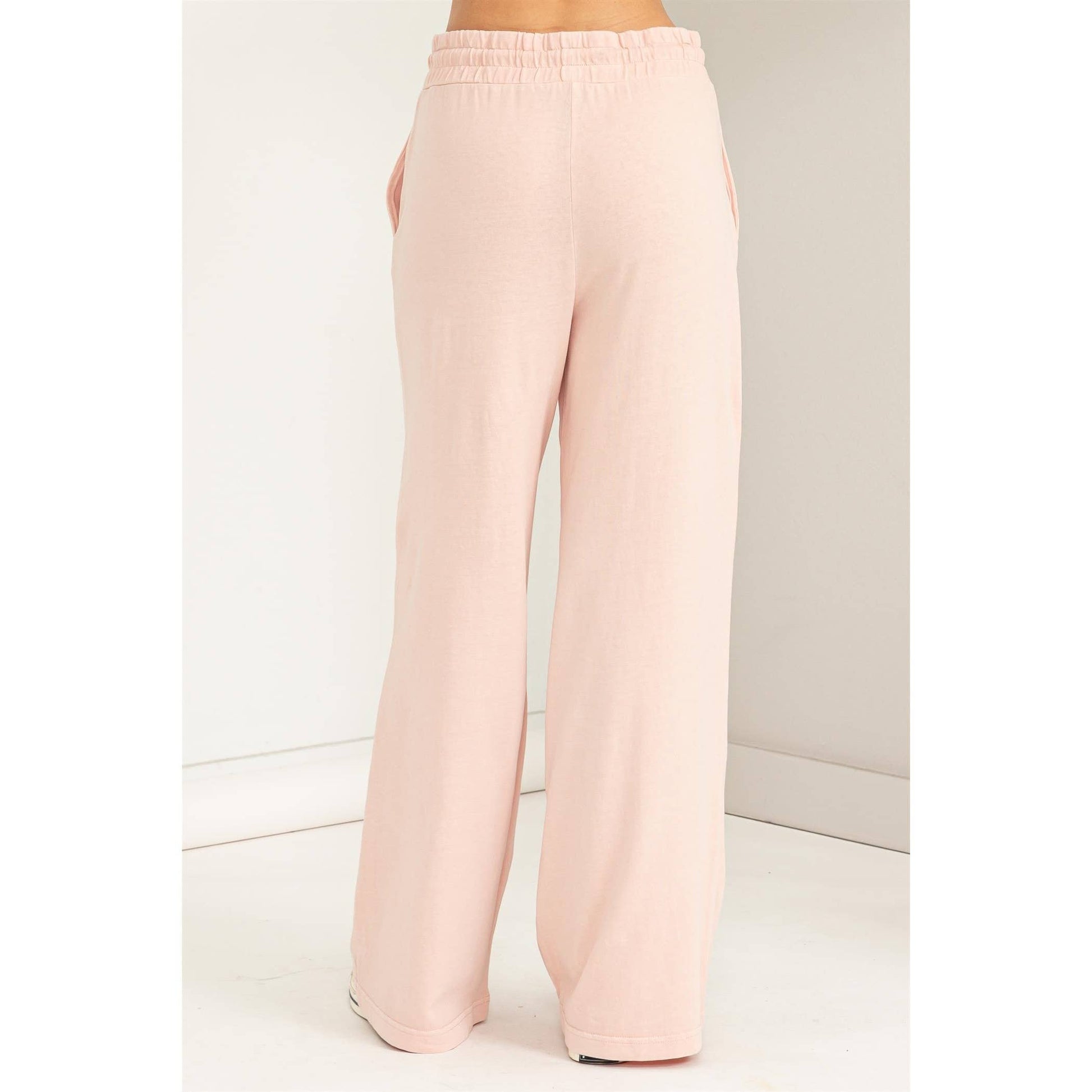 High Waist Drawstring Wide Leg Pants: DUSTY PINK / S-M-L(2-2-2)