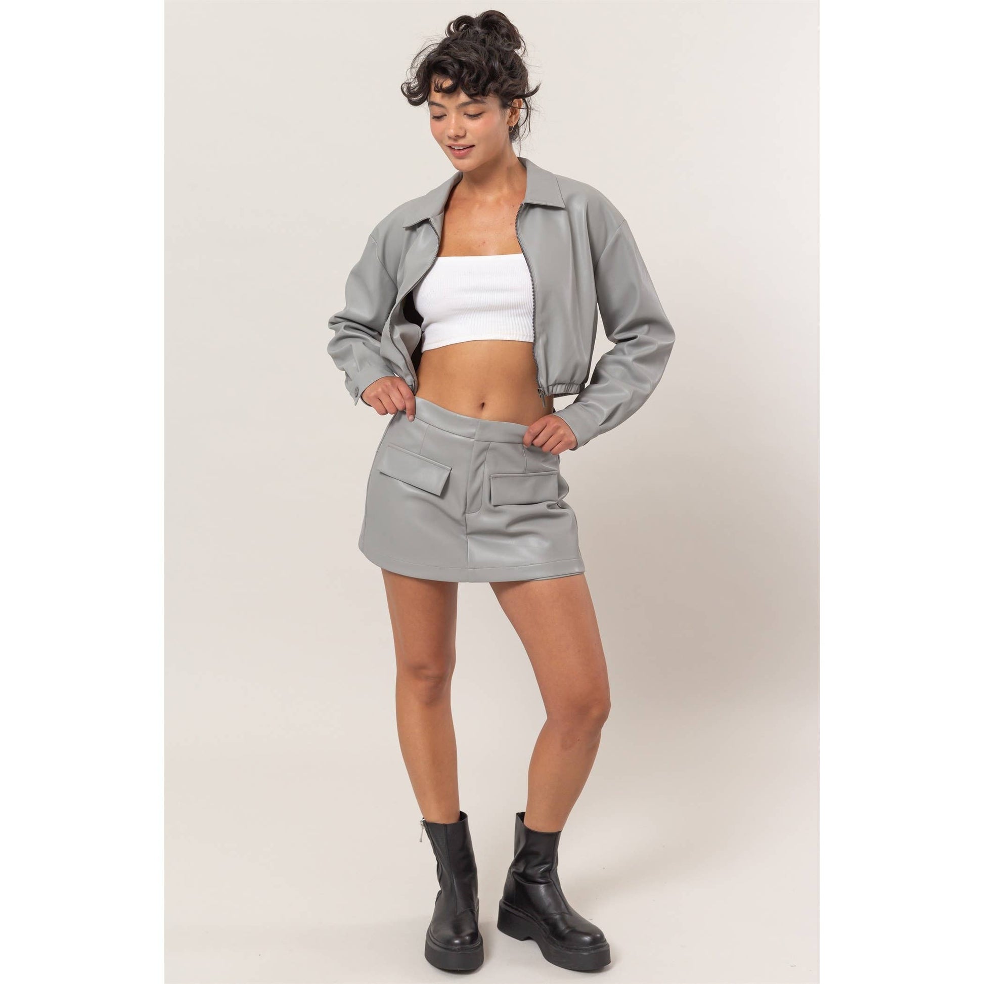 Leather Flap Pocket Skort: GRAY / S-M-L(2-2-2)