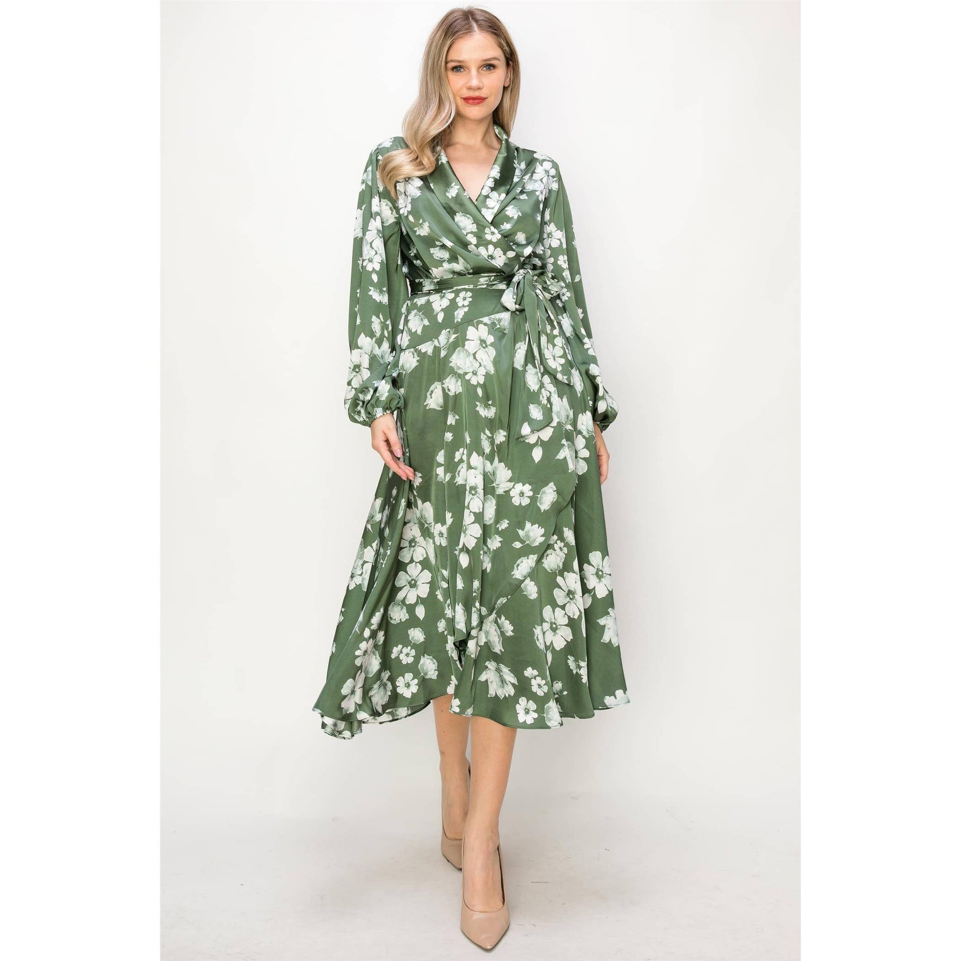 OL24A127-SATIN FLORAL LONG SLEEVE MAXI DRESS