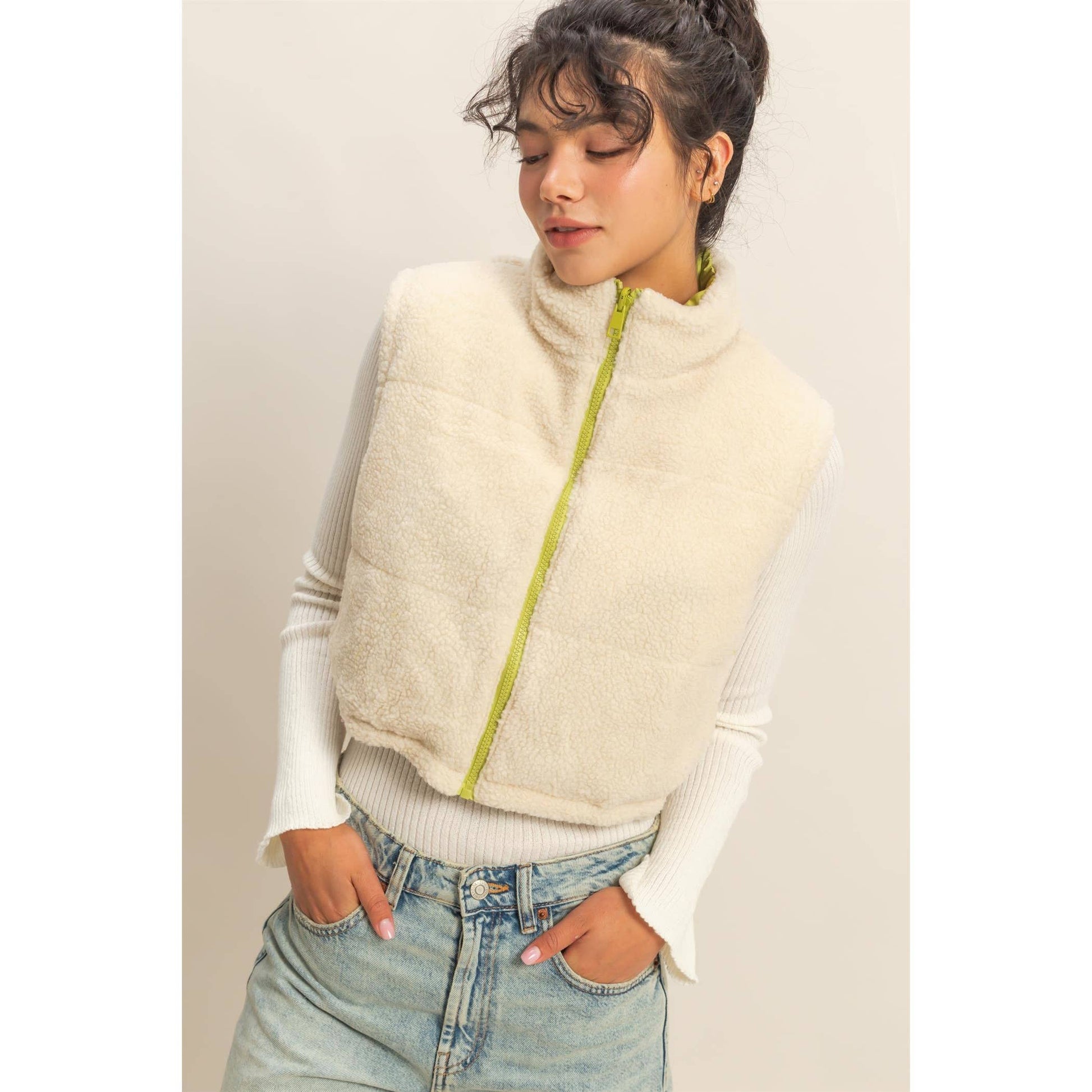 Reversible Puffer Vest: PALE OLIVE