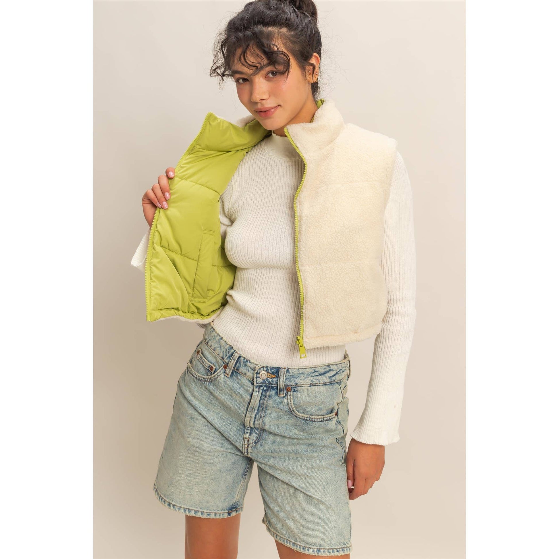 Reversible Puffer Vest: PALE OLIVE / S-M-L(2-2-2)