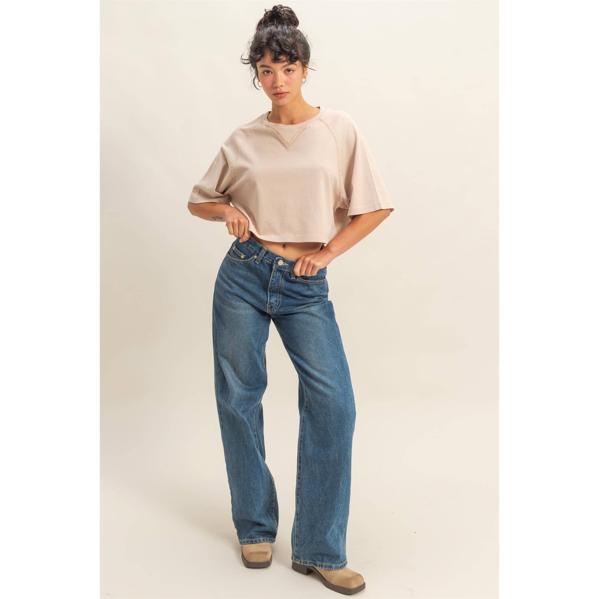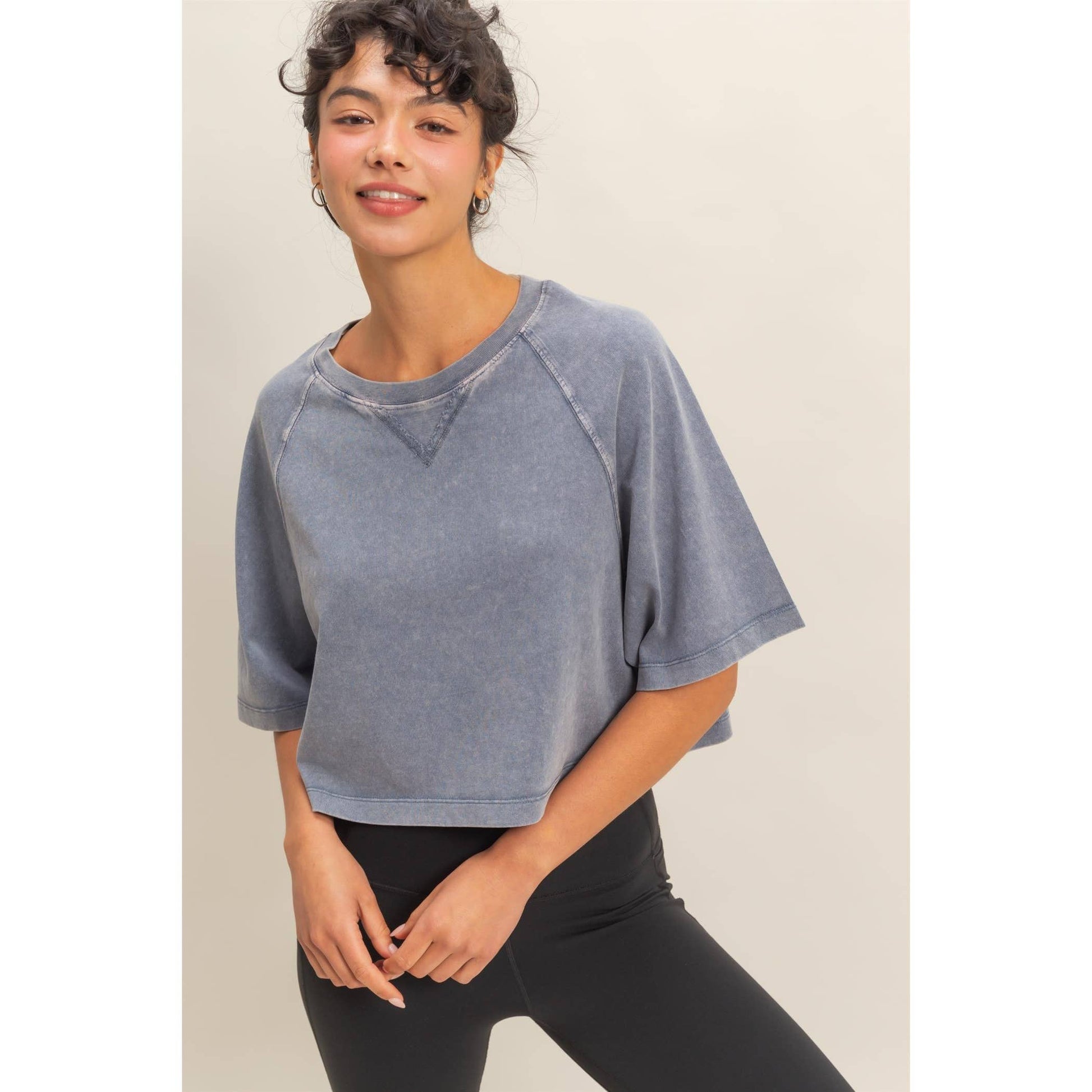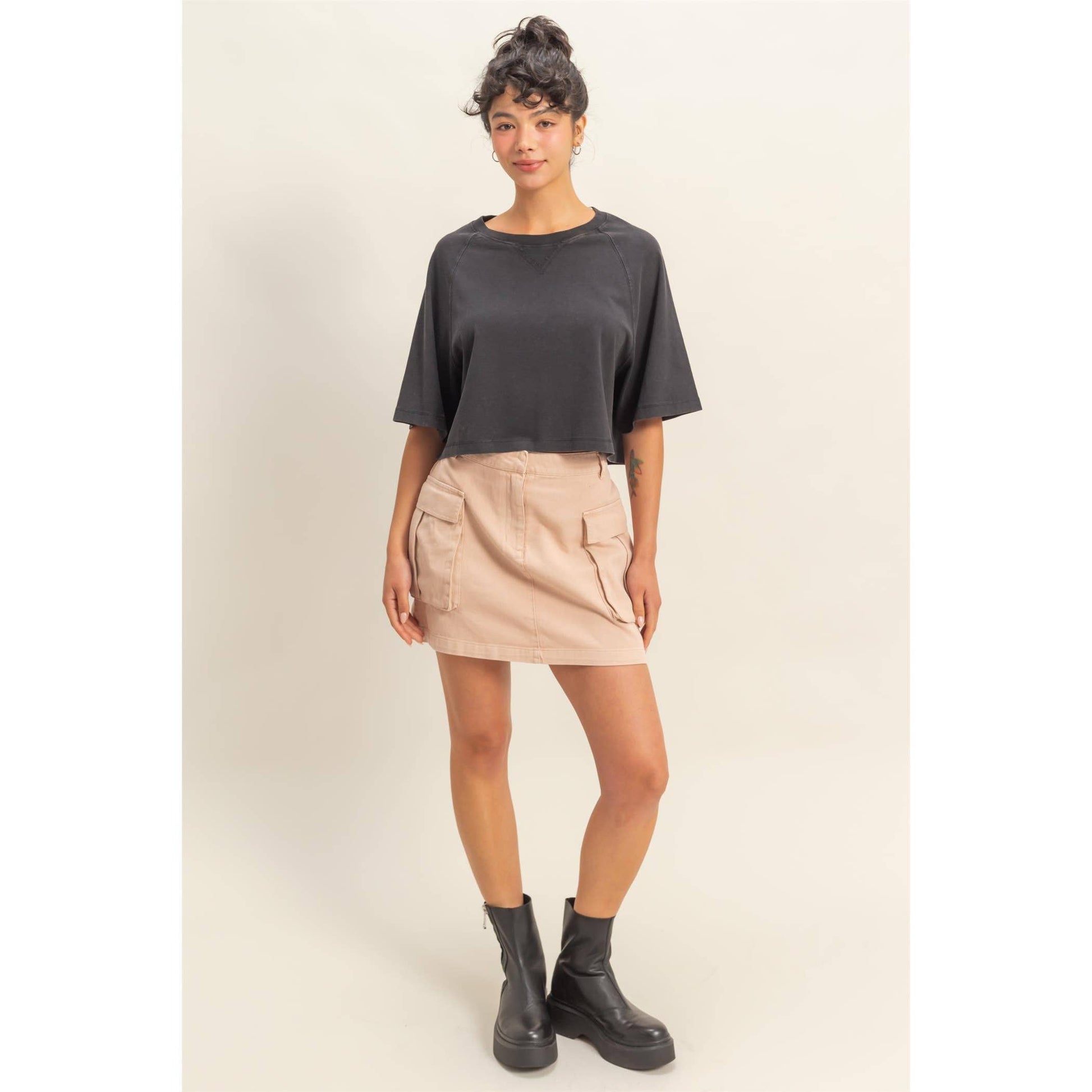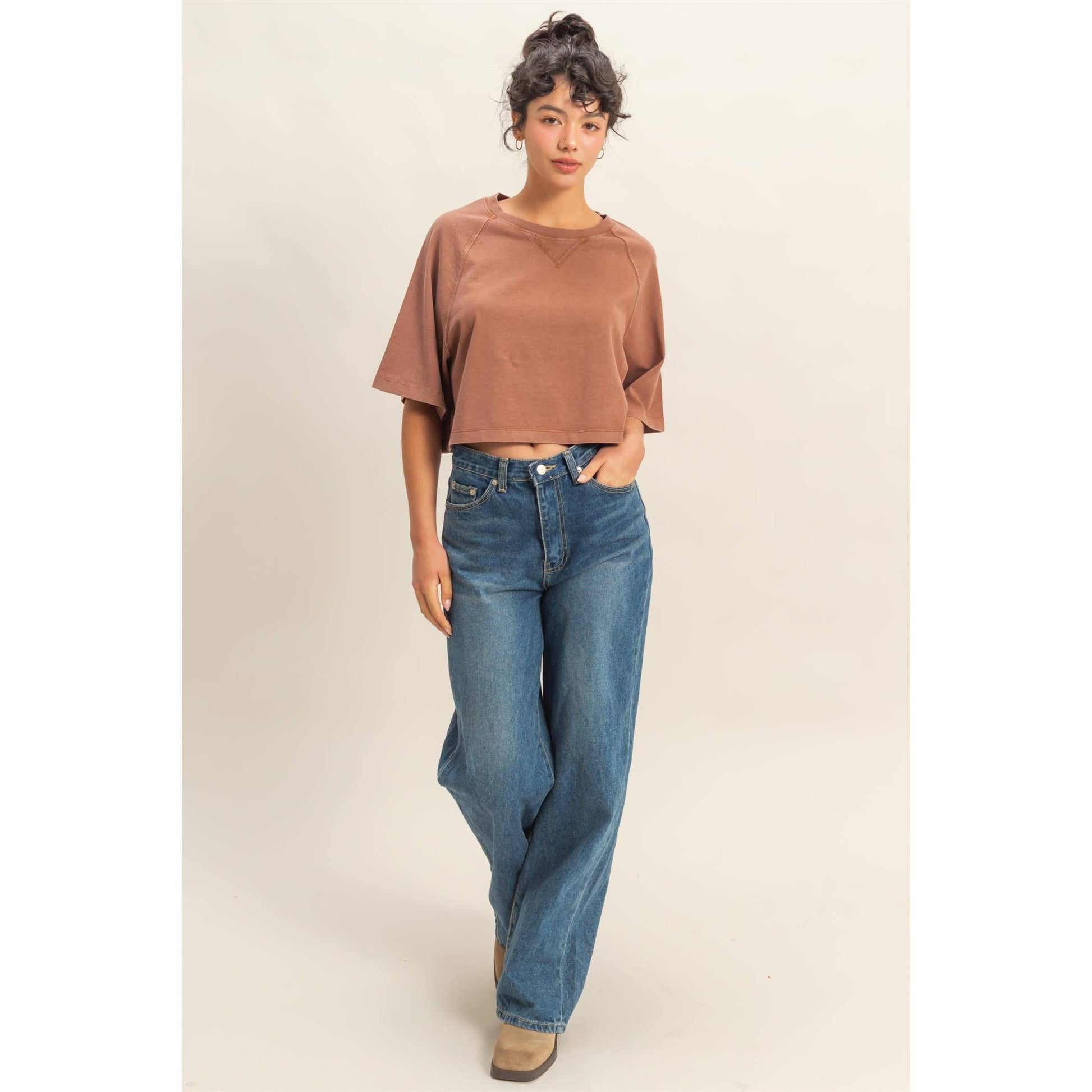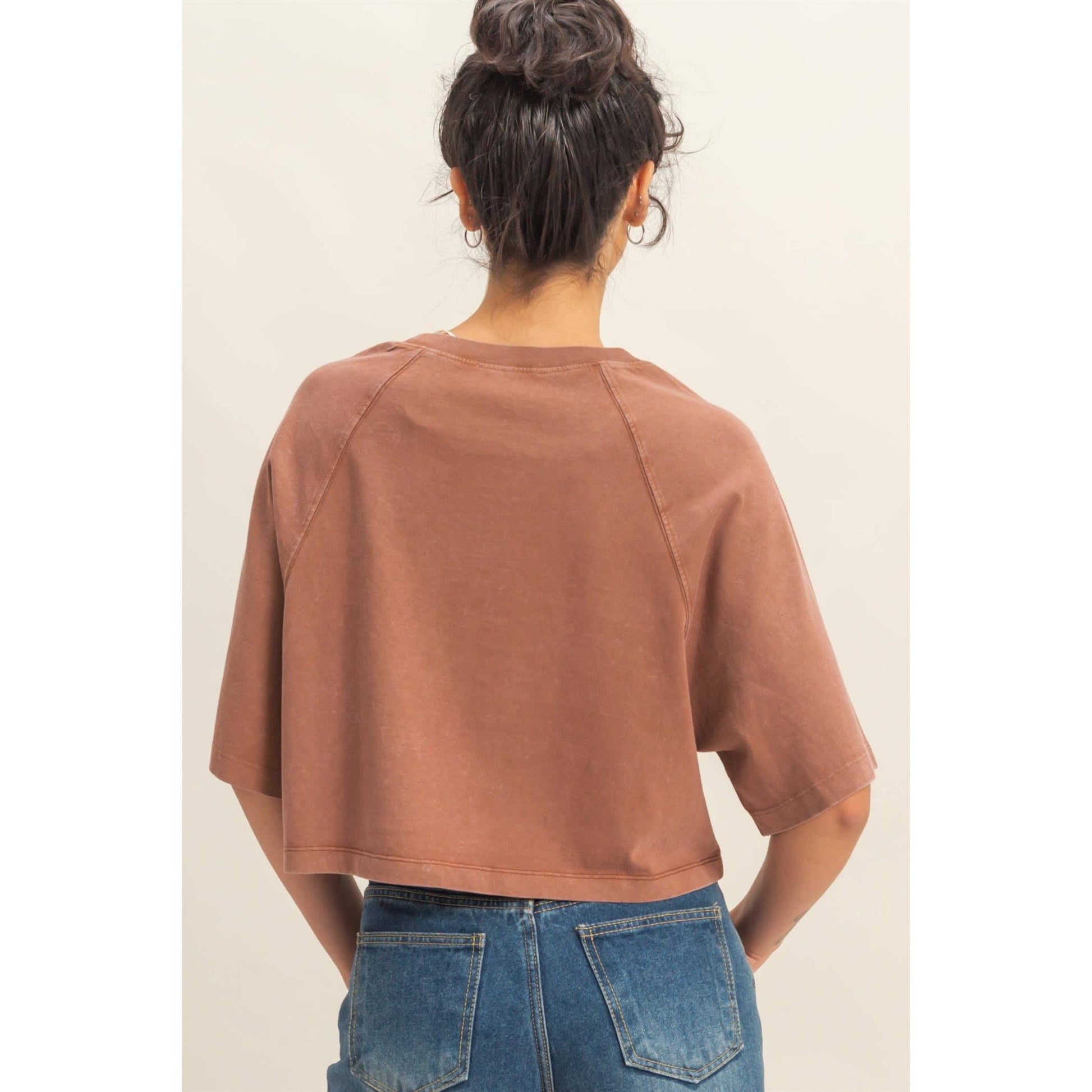 Short Sleeve Mineral Washed Cropped Tee: DARK TAUPE / S-M-L(2-2-2)